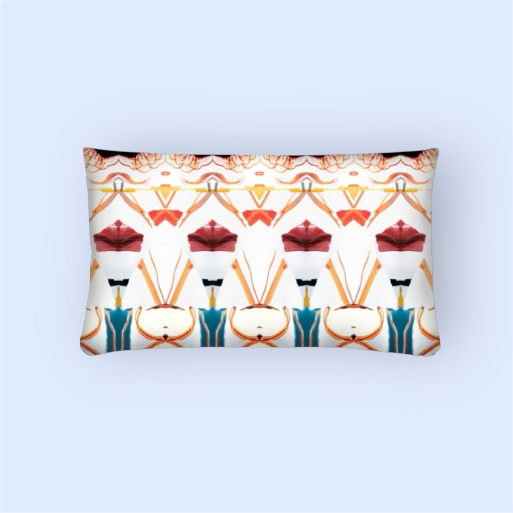Kudde i storlek 50x30 från kollektionen TJAKTJA. Motiv på framsida och orange baksida.